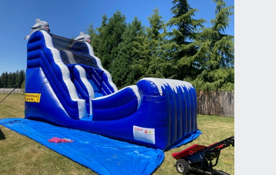 Dive into a world of underwater excitement with the Ocean Slide 17ft WET—an inflatable water slide that brings sea-themed thrills and refreshing fun to any event. Designed with vibrant ocean graphics and bold blue colors, this slide creates an instant splash zone that kids can’t wait to explore. Standing at 17 feet tall, it features a steep sliding angle that adds just the right amount of adrenaline to every ride, making it one of our most exciting and eye-catching water slides available. Whether you’re planning a backyard birthday party, a summer camp activity, or a beach-themed school event, this inflatable is the perfect way to keep kids cool, active, and entertained all day long. The Ocean Slide 17ft WET is especially popular for larger family gatherings and events with younger children, offering a safe yet thrilling experience with soft landings and continuous water flow for smooth sliding. Its compact footprint also makes it a great fit for residential spaces without compromising on the fun. If you're looking for an ocean-themed water slide rental in Vancouver, WA, this unit checks all the boxes—visual appeal, non-stop excitement, and easy setup. Make your summer celebration unforgettable with the Ocean Slide 17ft WET, where every splash feels like a wave of adventure!